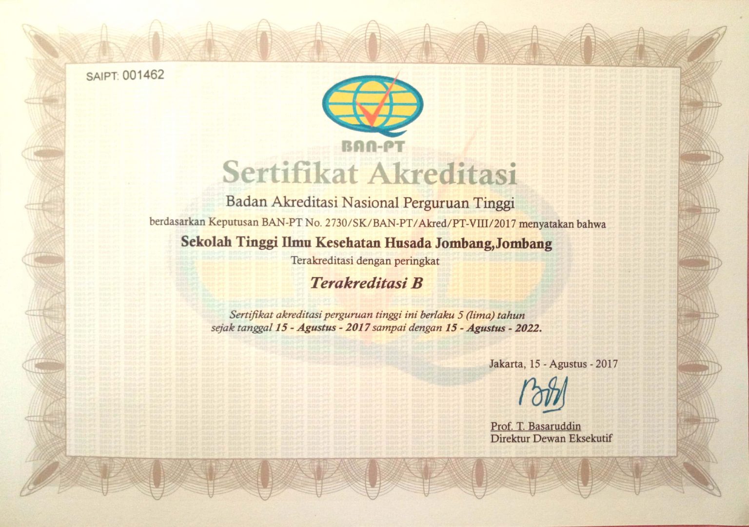 SERTIFIKAT AKREDITASI KAMPUS STIKES HUSADA JOMBANG
